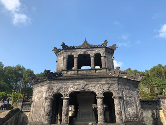 Quando chegámos, visitámos a Cidade Imperial original de Hue, que remonta ao séc.19, vimos os palácios e santuários. Almoçámos no restaurante Y thao garden, sugerido pela Xuan tu, e foi ótimo. A seguir ao almoço, visitámos o Thien Mu Pagoda - o edifício religioso mais alto do país . Atravessámos o rio de barco e voltámos a apanhar o carro para ir visitar o majestoso túmulo do Imperador Khai Dinh.